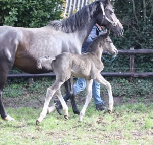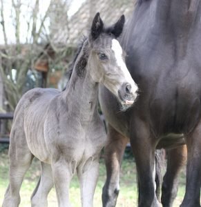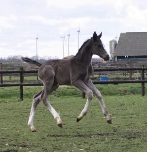 Geboren op 26 februari, een schitterend gitzwart merrieveulen met als vader de premiehengst Omar Sharif, dochter van onze eigen gefokte Kyrie, de derde generatie op stal ! Een sterk gebouwd veulen met veel kwaliteit.